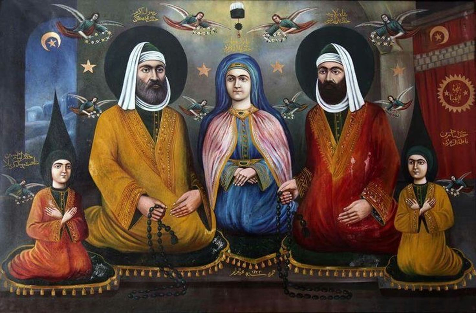 Подобные знамена часто увенчаны наконечником в форме раскрытой ладони, в которой каждый палец символизирует семейство пророка Мухаммеда вместе с ним самим, имамом Али, Фатимой и их сыновьями Хасаном и Хусейном.